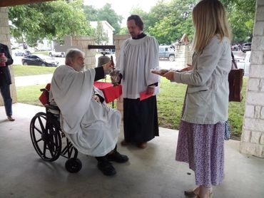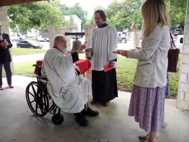 The Whitsunday Gospel, St. John 14:15-31, read first in English, and then (in celebration of the Apostles speaking in tongues) verses in Greek, French, Irish Gaelic, Latin, Kiswahili, Spanish, Mandarin Chinese, German and Chaucer's (Wycliffe's) English.